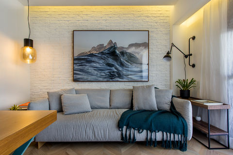 Se você conhece o Rio de Janeiro, você sabe que é difícil não se apaixonar por essa cidade e assim fica fácil entender esse projeto. Um estrangeiro que se encantou pelas belezas dessa cidade e queria um lugar pra chamar de seu em terras cariocas, foi assim que transformamos esse apartamento de 60m2 em um lugar cheio de personalidade e alma carioca. O grande desafio do projeto foi criar espaços amplos e multiusos em um apartamento de metragens econômicas. A sala que é de estar, de tv e de jantar ao mesmo tempo e super funcional graças a disposição dos móveis e a marcenaria que atende a todos os usos dela. Uma cozinha que é não só cozinha americana como também área de serviço. Tudo isso com a alegria das cores que o Rio traz pra dentro deste apartamento através da decoração e das fotos lindas dessa cidade.